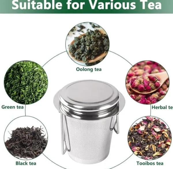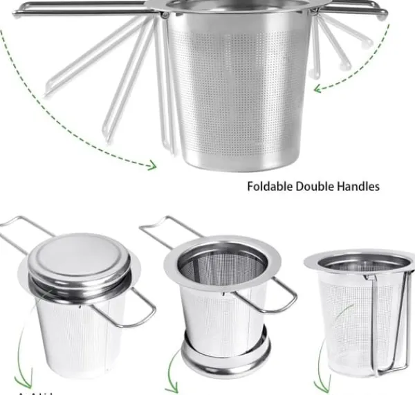 Välkommen till vår butik! Denna mångsidiga tesil i rostfritt stål är perfekt för att filtrera teblad, medicinpåsar, kryddor och soppor. Den förhindrar effektivt matläckage under tillagning och är enkel att använda. De fina, jämnt stora hålen gör att vatten kan rinna igenom enkelt samtidigt som den håller fasta partiklar inne. Det långa, vikbara handtaget ger ett säkert grepp och skyddar dina fingrar från värme. Tillverkad av hållbart, giftfritt rostfritt stål, är den byggd för att hålla och lätt att rengöra. Produktmått: 7,4 x 6,5 x 6,5 cm (2,91 x 2,55 x 2,55 tum). Din beställning inkluderar 1 tesil och 1 lock. Nöjdhet: Våra kunder är vår högsta prioritet. Om du upptäcker några produktproblem efter att du mottagit varorna, såsom skador eller felaktig mängd varor, vänligen kontakta säljaren omedelbart. Vi gör vårt bästa för att ge dig tillfredsställande kundservice.