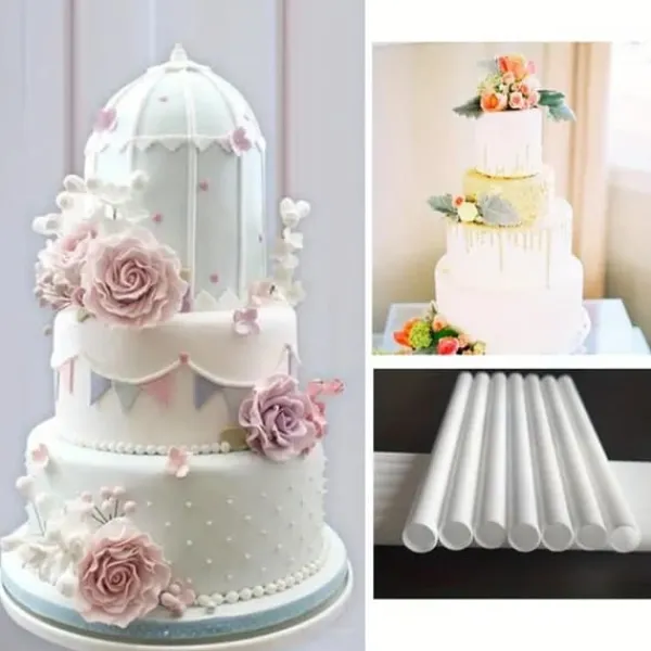 Varje stöd är rörformat, vilket gör att det enkelt kan justeras till alla typer av tårtor. För att justera det till rätt höjd, använd helt enkelt en tandad kniv – exakt skärning av stödet är möjligt till valfri längd, tack vare vilket varje lager av tårtan kommer att stödjas perfekt. Stöden har en