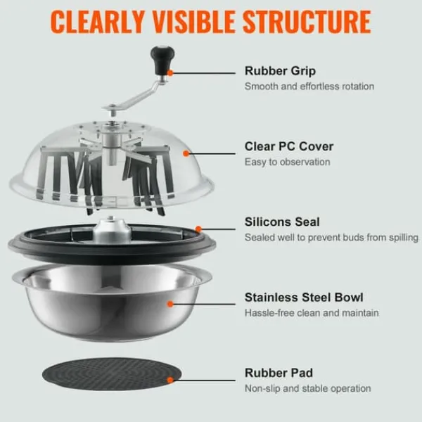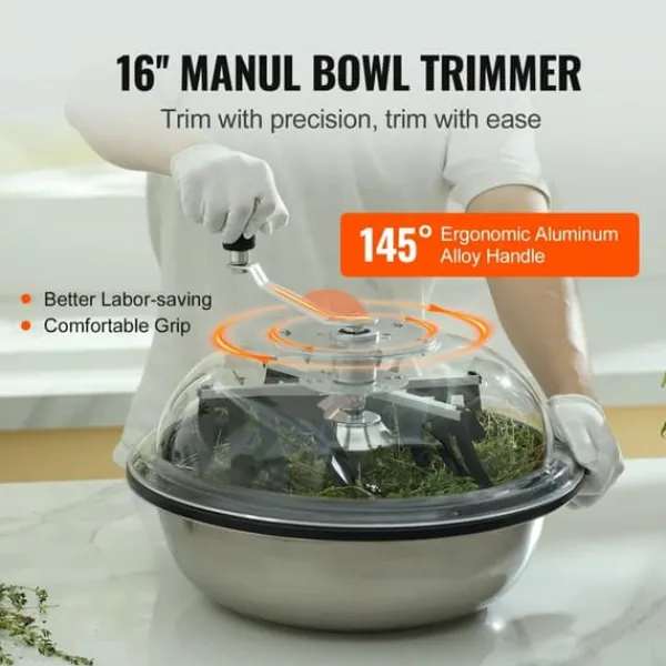 – Funktionen tydligt synlig: Vår bladskålstrimmer kommer med ett genomskinligt lock så att du kan se trimningsprocessen från första raden. Se knopparna förändras med dina egna ögon. Den 16-tums trimningsskålen i rostfritt stål underlättar snabb rengöring och ger en ren, non-stick trimyta, medan gummikudden säkerställer stabilitet och håller trimmern säkert på plats för en perfekt trimning.
