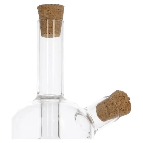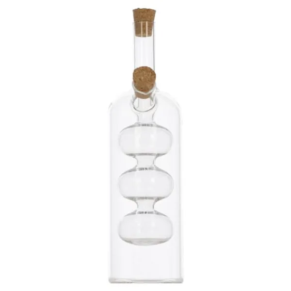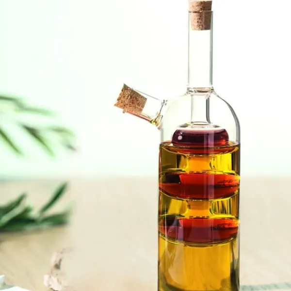 Denna 2-i-1 olja/vinägerflaska med en kapacitet på 290 ml är den perfekta lösningen för alla som letar efter en funktionell och designad kökstillbehör.. Tillverkad av högkvalitativt glas garanterar det hållbarhet och elegans som kommer att ge charm till alla bord. Den har designats med komfort i åtanke. Dess ergonomiska form gör att den ligger perfekt i handen, och det specialdesignade locket säkerställer exakt utmatning av olja eller vinäger.. Du behöver inte längre oroa dig för att hälla för mycket eller för lite – denna flaska säkerställer perfekta proportioner.
