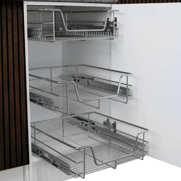 Våra utdragbara köksförvaringskorgar i metall ger förser en utmärkt lösning för att maximera ditt förvaringsutrymme. Med heltäckande kullagerskenor dras dessa starka och robusta korgar smidigt ut ur skåpet för en enkel och praktisk förvaringslösning.