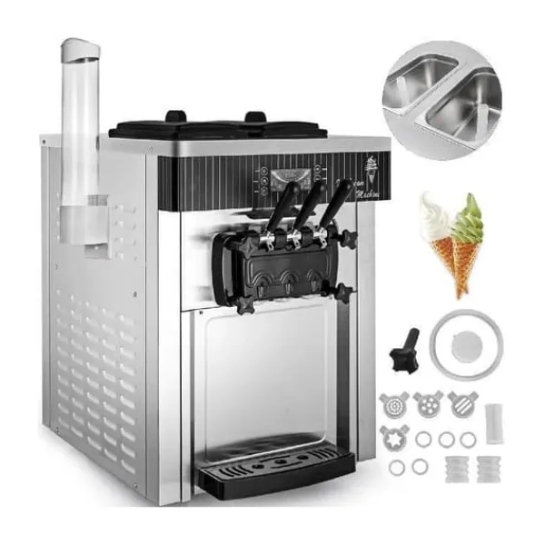 Denna mjukglassmaskin är beroende av ett kraftfullt kylsystem och kylare, som kan arbeta effektivt och stabilt. Den högkvalitativa 2200-watts kompressorn ger kontinuerlig kraft till maskinen, minskar buller, sparar energi och är humaniserad.
