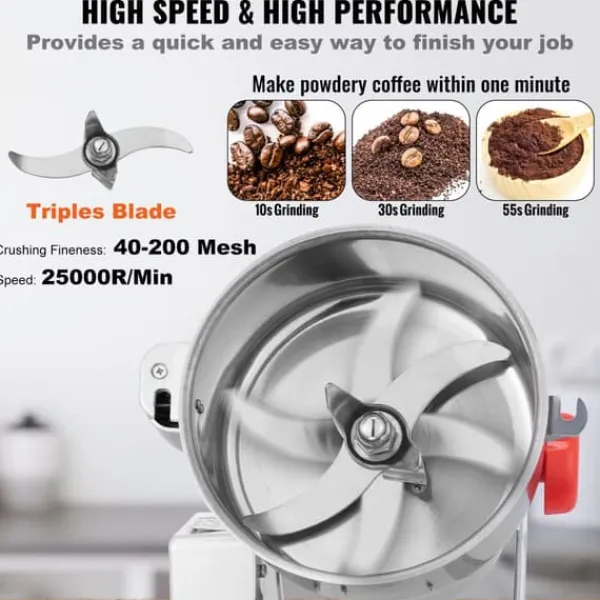 Denna spannmålskvarn uppfyller alla dina dagliga malningsbehov. Spannmålskvarnen kan mala stora mängder spannmål, vilket gör mjöl och recept mycket enkelt. Spannmålskvarnen använder en höghastighetsmotor för att snabbt krossa olika mjuka och hårda material.