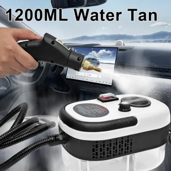 Kraftfull ångrengörare – 2500W, snabb uppvärmning på 10 sekunder, 6 hastigheter, 3 munstycken, 1L vattentank