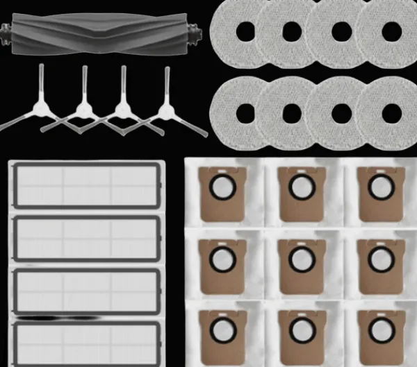 Borstar och filter kompatibla med Dreame: Satsen med reservdelar innehåller 1 huvudborste, 4 sidoborstar, 8 moppdynor, 4 dammsugarfilterfilter och 9 dammsugarpåsar kompatibla med Dreame L10s Ultra/S10 Pro, Xiaomi Mijia Omni Robot Vacuum-Mop B101CN och Xiaomi Robot Vacuum X10 Plus.