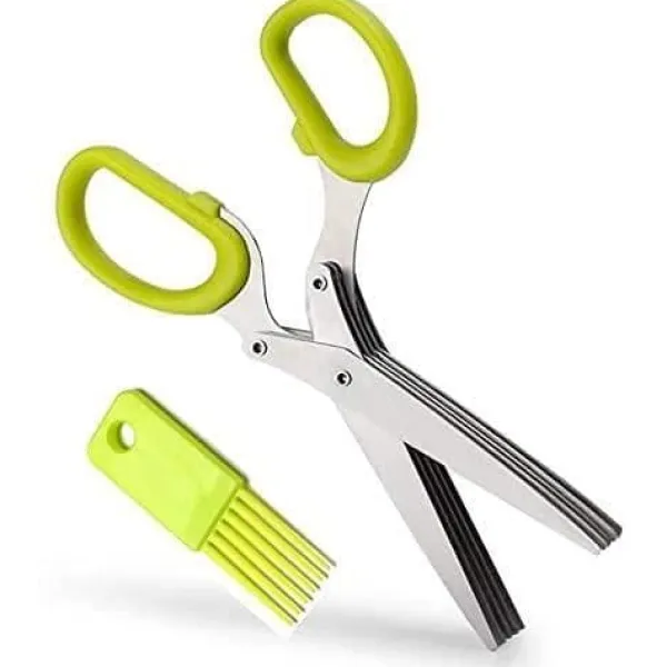 KÖKSSAX 2st örtsax 5-blads kökssax i rostfritt stål med utrustad aromatisk örtrengöringskam (grön+blå)*Mått: 19 cm i längd, och 2 st.