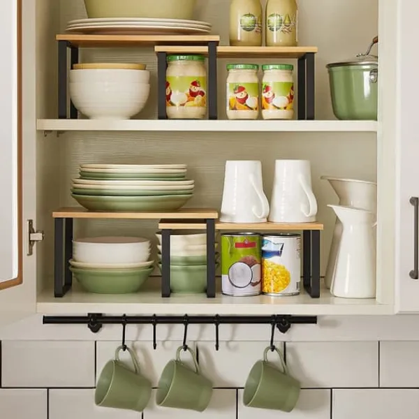 - I köket: Placera hyllorna i skåpet eller på bänkskivan för att maximera förvaringsutrymmet. Perfekta för kryddburkar, burkar och skålar. Ett utmärkt sätt att organisera köksredskap och ingredienser.