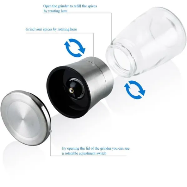 Oavsett om du behöver kryddkvarnen för salt, peppar, örter eller chili – du kan alltid ändra innehållet beroende på vad du föredrar, och tack vare den diskmaskinssäkra glasbehållaren finns inga rester av lukt eller smak kvar.