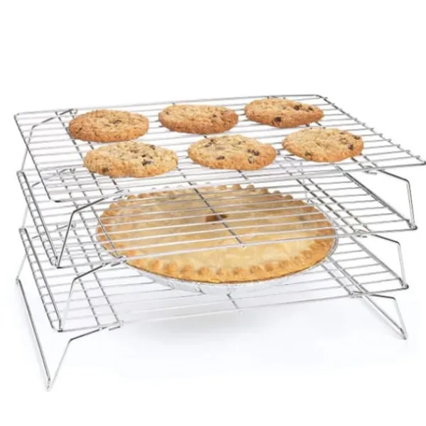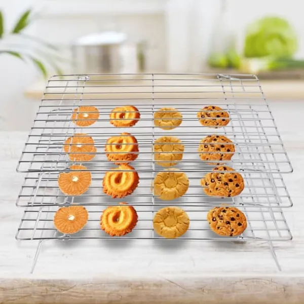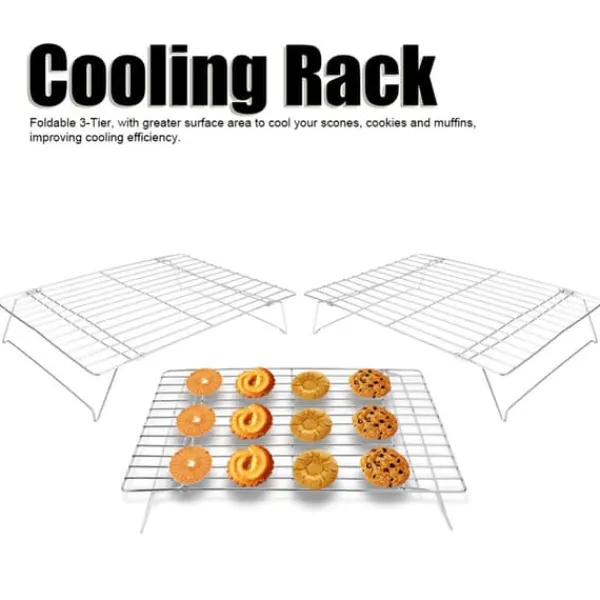 Välkommen till vår butik! Detta hopfällbara kylställ i 3 nivåer har en stor yta, perfekt för att effektivt kyla scones, kakor och muffins. Dess rutmönster säkerställer optimal luftcirkulation för jämn och snabb bakning. Det är ett viktigt verktyg för att kyla kakor snabbt, vilket förhindrar fukt och gör det idealiskt för daglig användning. Den hopfällbara bendesignen möjliggör enkel förvaring när den inte används, och de bågformade fötterna ger stabilitet utan att glida. Tillverkad av högkvalitativt, värmebeständigt järn med en non-stick yta, är den hållbar och lätt att rengöra. Du får totalt 3 kylställ. Varje ställ mäter cirka 34,3 x 24 x 19,4 cm (13,5 x 9,4 x 7,6 tum) och väger cirka 820 g (28,9 oz). Nöjdhet: Våra kunder är vår högsta prioritet. Om du upptäcker några produktproblem efter att du mottagit varorna, såsom skador eller felaktig mängd varor, vänligen kontakta säljaren omedelbart. Vi gör vårt bästa för att ge dig tillfredsställande kundservice.