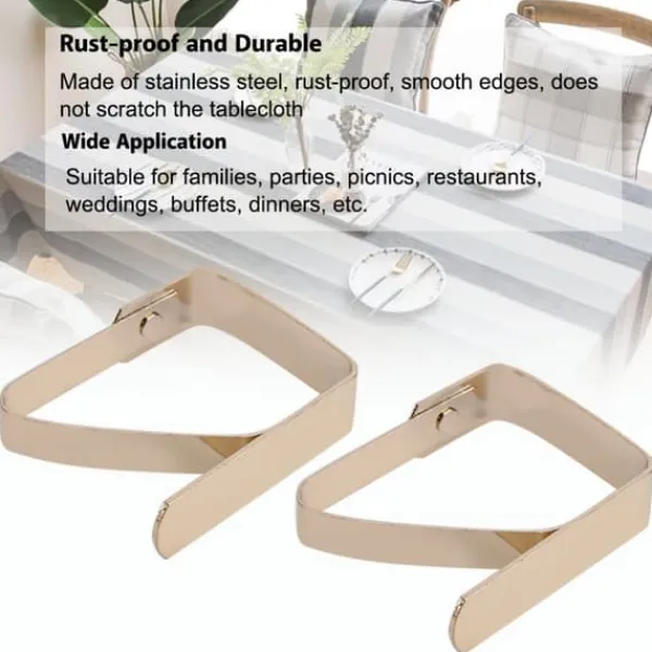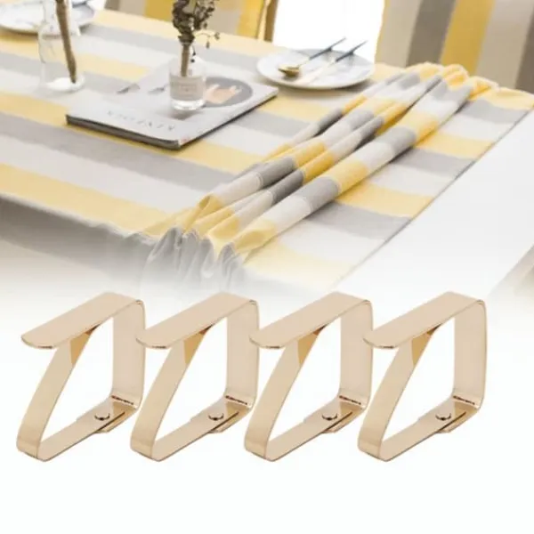Välkommen till vår butik! Våra dukklämmor i rostfritt stål är utformade för att hålla dina bordsdukar säkert på plats och förhindra att de glider även i blåsiga förhållanden. Varje klämma mäter cirka 5 cm x 4 cm och är tillverkad av rostfritt, hållbart rostfritt stål med släta kanter för att undvika att repa din duk. Setet innehåller 4 guldfärgade klämmor, lämpliga för bord med en tjocklek på mindre än 3 cm. Dessa klämmor är enkla att installera och ta bort, vilket gör dem idealiska för en mängd olika användningsområden som familjesammankomster, fester, picknickar, restauranger, bröllop, bufféer och middagar. De är en pålitlig hjälpreda för både inomhus- och utomhusaktiviteter och erbjuder upprepad användning jämfört med plastalternativ. Nöjdhet: Våra kunder är vår högsta prioritet. Om du upptäcker några produktproblem efter att du mottagit varorna, såsom skador eller felaktig mängd varor, vänligen kontakta säljaren omedelbart. Vi gör vårt bästa för att ge dig tillfredsställande kundservice.