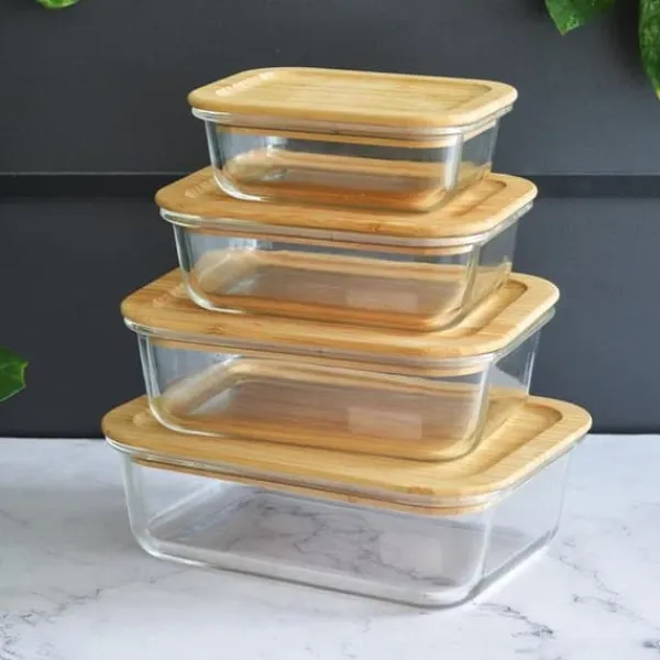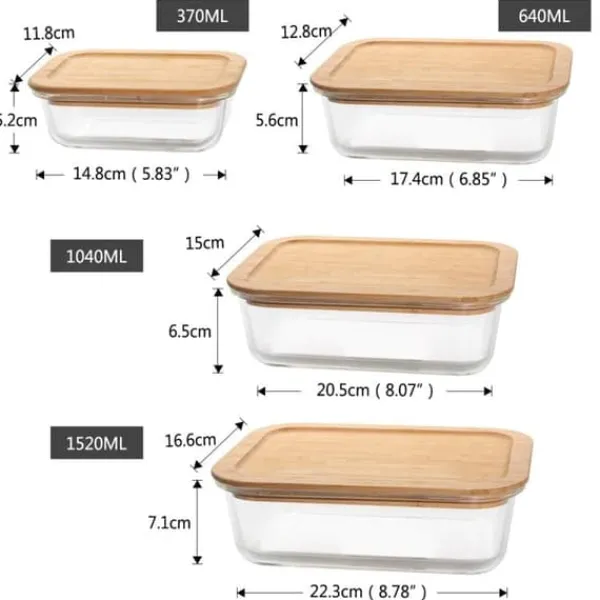 Innehåller: 4 stycken matlådor med bambulock (Storlek 370ml /630ml /1040ml /1520ml)