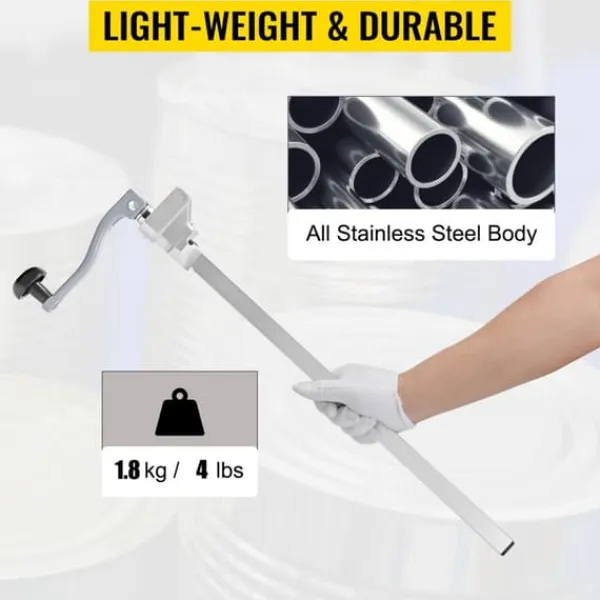Denna burköppnare är designad för lättare användning. Alla delar är tillverkade av rost- och korrosionsbeständigt rostfritt stål, vilket förlänger deras livslängd. Även om den bara väger 4,0 lbs/1,8 kg.