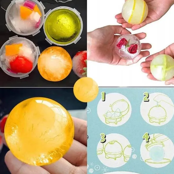 Formarna är enkla att använda – fyll dem med vatten genom den lilla öppningen och stäng med den medföljande silikonproppen. Efter några timmar i frysen är bollarna redo att ta din drinkupplevelse till nästa nivå. Ett måste för fester och middagar!