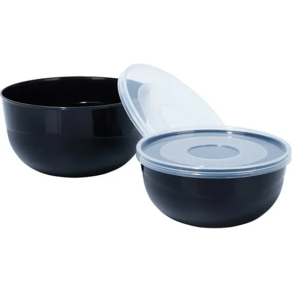 Solida och hållbara – Skålarna är gjorda av svart plast av högsta kvalitet, med genomskinliga lock. Skålarna är lätta och hållbara. Beständig mot låga och höga temperaturer. Den mindre blandningsskålen har ett handtag och en pip, medan den större skålen har två handtag för enkel att bära.