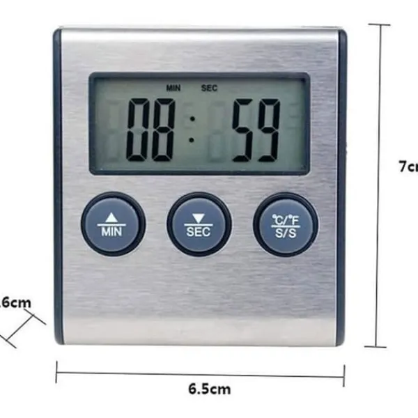 Temperaturmätområde: -50-300°C; Temperaturmätningsperiod: 5 sekunder; Temperaturjusteringsområde: 0~300°C; Storlek: 6,5*7*1,8cm; Batteri: AAA-batteri (ingår ej); Material: 304 rostfritt stål.