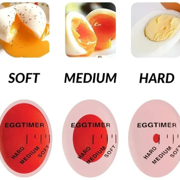 Uppnå perfekt kokta ägg varje gång med en smart äggtimer som visar exakt när äggen är mjuka, medelhårda eller hårdkokta. Placera timern tillsammans med äggen i kastrullen och se hur färgen gradvis förändras under kokningen. Den röda färgen bleknar från kanterna inåt och visar tydligt tillagningsgraden. Med denna enkla och effektiva lösning slipper du gissa och riskera att äggen blir för hårda eller för lösa – resultatet blir alltid perfekt.