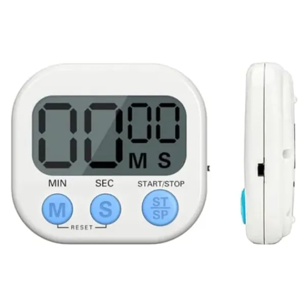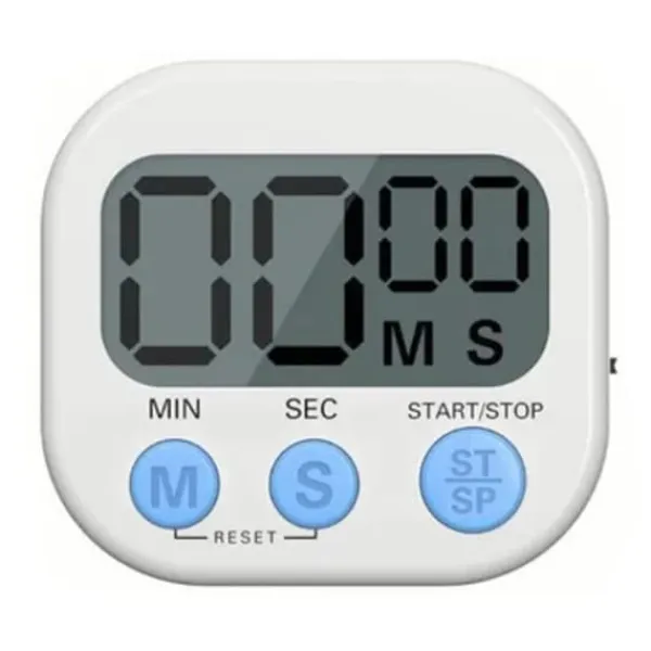 Denna kökstimer har en stor LCD-skärm med tydliga teckensnitt, vilket gör det enkelt för både vuxna och barn att läsa. Den kan räkna ner från vilken tid som helst till 99 minuter och 59 sekunder, tillsammans med ett larm som hjälper dig att hålla reda på tiden exakt. Timern kommer med fästen och en magnetisk design för enkel placering på valfri plats, tillgodose olika behov. Tillverkad av hållbart ABS-material, är denna multifunktionella timer lämplig för långvarig användning i kök, matlagning, bakning, läxor, träning och mer.
