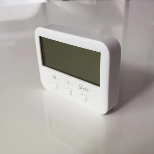 Den digitala timerväckarklockan kan programmeras i upp till 99 minuter och 59 sekunder. Timern kan även användas som nedräkning och stoppur.