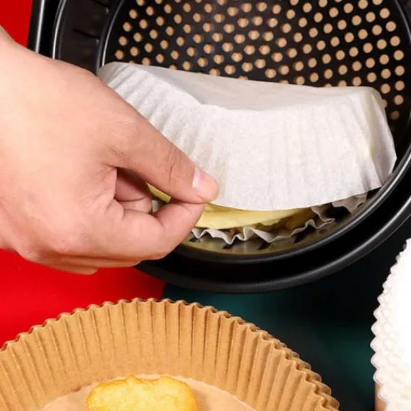 Smidiga engångspapper i samma stuk som bakplåtspapper fast till air fryer! Slipp diska din air fryer med hjälp av dessa pappersformar.