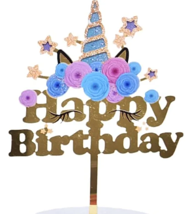 Akryl tårtdekoration Grattis på födelsedagen ENHÖRNING