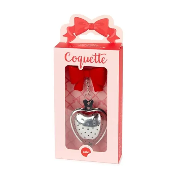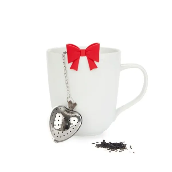 Denna hjärtformade tebryggare med röd rosett är en romantisk presentidé för en teälskare.