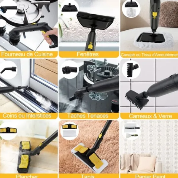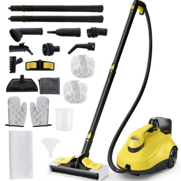 Denna 2000W ångtvätt levererar högtrycksånga upp till 160°C för effektiv borttagning av smuts och fläckar på olika ytor. Den har en stor vattentank för förlängd rengöringstid, flera säkerhetslås och mångsidiga tillbehör för olika rengöringsuppgifter, allt utformat för enkel manövrering och effektiv användning.