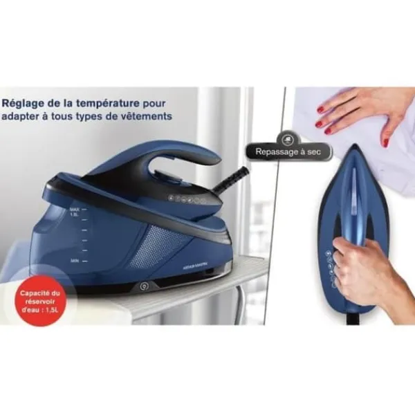 Ångflöde: 120 g/min – Kalkskyddssystem: ja – Sultyp: Keramisk – Pressfunktion: Ja – Kapacitet för vattentank för strykjärn: 1,5 liter – Eleffekt: 2800 Watt