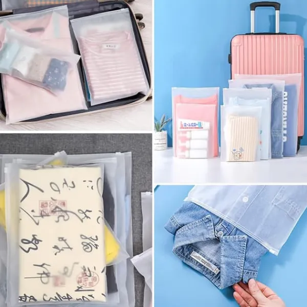 Med fem praktiska storlekar (40x30cm, 35x25cm, 30x20cm, 20x25cm, 25x17cm) organiserar du kläder, underkläder, toalettartiklar och skor effektivt i resväska. Frostade ytor skyddar privatliv samtidigt som ventilationshål förhindrar fukt och mögel – kläder förblir torra och fräscha under hela resan. Perfekt för att separera rena från smutsiga plagg.