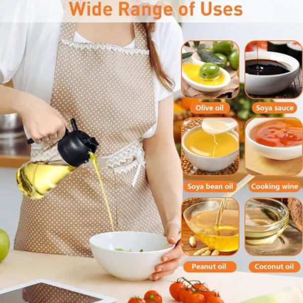 Dubbel funktion, mångsidig: Denna matlagningssprayflaska kan både spraya och hälla olja, och passar för olika matlagningssituationer som salladsdressing, grillning, stekning och bakning.