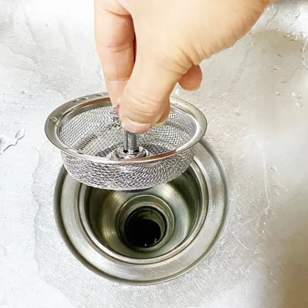 Med handtag och gummipropp: Det går lätt att lyfta upp silen tack vare handtaget. Genom att vrida på handtaget kan du dessutom trycka ner gummipluggen och stänga till avloppet.