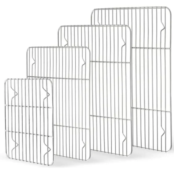 1、 Ingen galvanisering, ingen beläggning, så det finns ingen anledning att oroa sig för kemikalier, skalar av skräp i maten. Hela gallret är tillverkat av rostfritt stål av livsmedelskvalitet 304. Professionella bakställ är förtroendebeständiga och kräver inte täta byten 2、 Stabil struktur, solid fyra fots svetsning, god styrka och hållbarhet, motstånd mot vridning och skakning. Höjden på 1,5 cm lyfter maten och låter luften cirkulera runt pannan för perfekt tillagning och kylning utan att vända maten.