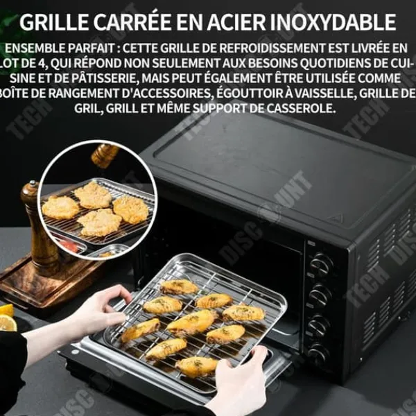 Detta set med 4 kylgaller i rostfritt stål är perfekt för matlagning, bakning och förvaring. Värmebeständiga upp till 190°C, de förbättrar luftcirkulationen för snabb och jämn nedkylning. Perfekta för kött, frukter och grönsaker.