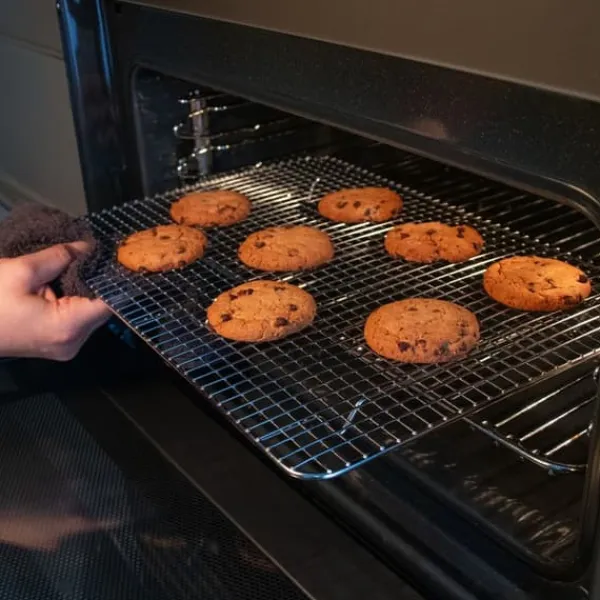 Du kan använda bakgallret för att steka, grilla och baka i ugnen vid höga temperaturer. Dessutom garanteras snabb och noggrann rengöring tack vare det diskmaskinsäkra materialet.
