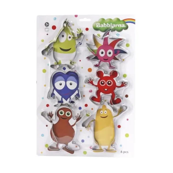 Nu kan du baka kakor med Babblarna, barnens färggladaste favoritkaraktärer! Roliga bakformar som passar både för pepparkaksbak och för lek med trolldeg eller annan lera. Med dessa bakformar i metall kan du baka kakor som ser ut som alla de populära karakt Produktens storlek är: 80- 120 mm