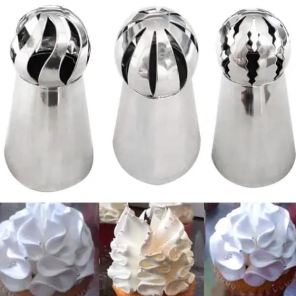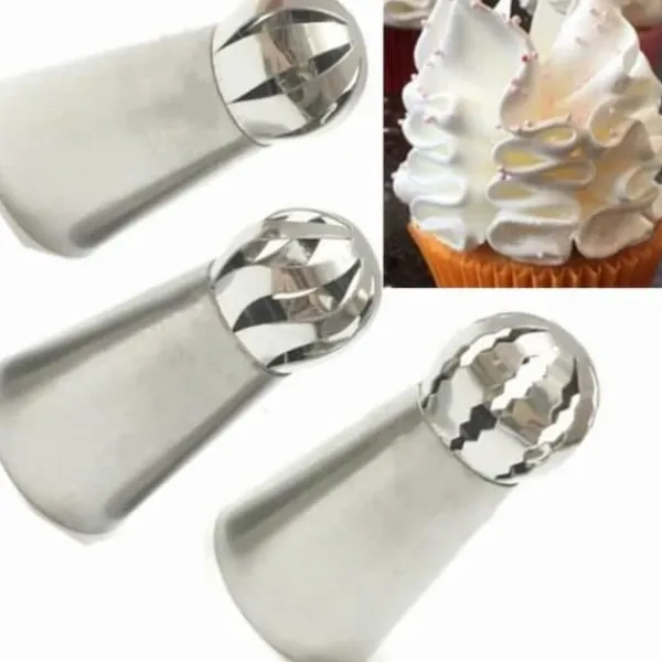 Set med 3 spritstyllar för perfekt dekoration av dina tårtor. Idealiska för att skapa mönster i grädde, dessa tyllar är ett måste för bakentusiaster.