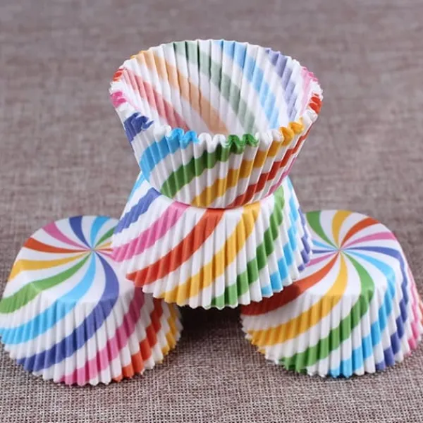 Ska du bjuda in till kalas eller fest? Vid tillfällen som dessa har hembakade kakor en given plats på fikabordet. Paketet innehåller 100 st muffinsformar som passar perfekt för exempelvis kanelbullar, muffins eller hallongrottor. Muffinsformarna är prydda med ett randigt motiv i regnbågens alla färger.