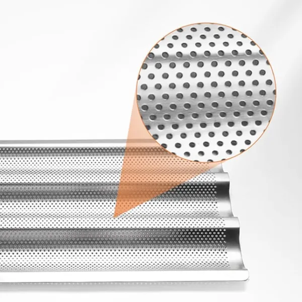 Högkvalitativt material: Tillverkad av högkvalitativt 403 rostfritt stål. Denna baguetteplåt motstår rost och korrosion, vilket säkerställer långvarig prestanda för otaliga baksessioner.