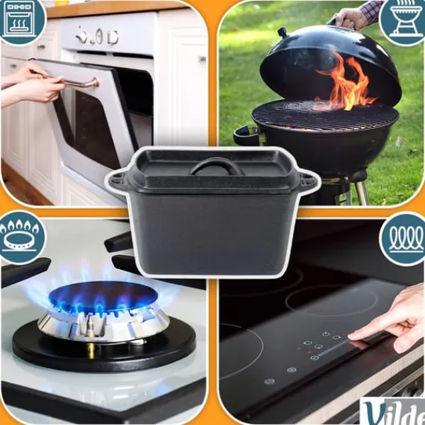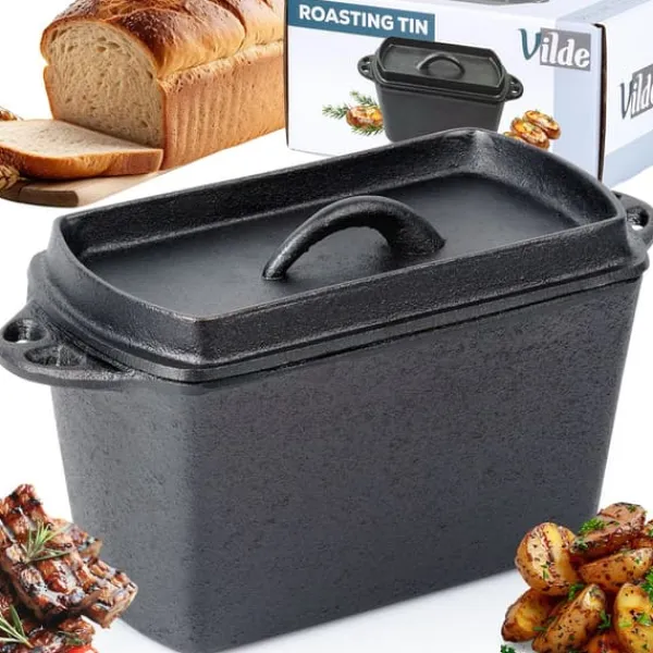 Rektangulär form för att baka bröd och andra rätter. Dess rektangulära form är idealisk för att baka rostat bröd, paté, babka eller fruktkaka. Solidt tillverkad och korrekt använd, kommer den att hålla i många år. Tack vare gjutjärnets egenskaper fördelar den värmen jämnt, vilket möjliggör utmärkta bakresultat och bevarar den fulla smaken av tillagade rätter. ❗️OBS! Diska efter varje användning, torka torrt med en torr trasa och smörj in – annars kommer rost att bildas på köksredskapen, vilket är en naturlig process för denna typ av material. Detta köksredskap har inga teflonbeläggningar. Regelbunden skötsel förhindrar korrosion och säkerställer långvarig användning. Original Vilde-produkt från Cast Line. Tillverkad i enlighet med europeiska standarder.