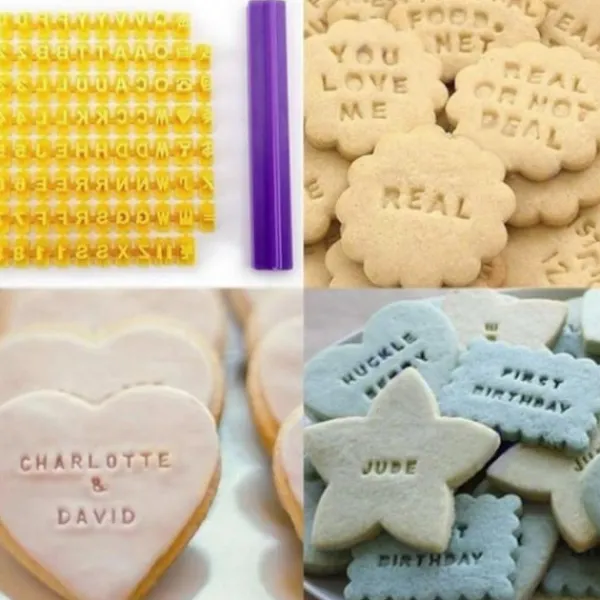 Stämpel som du använder för att skriva trevliga meddelande och liknade på kakor eller annat du har bakat.