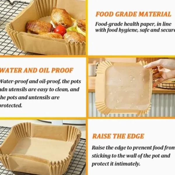 Med dessa papper blir din airfryer inte längre smutsig och flottig efter användning. Formarna är oljesäkra, vattentäta samt av non-stick material, lämpliga till all typ av matlagning i airfryer och ugn.