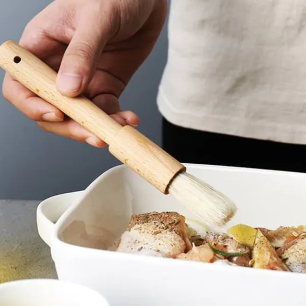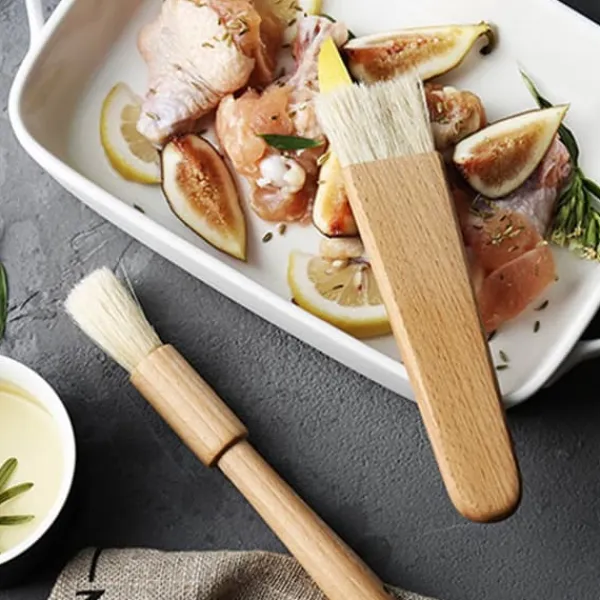 Dessa borstar är gjorda av naturliga borst och eukalyptus och är tillverkade med fint utförande för att säkerställa att inga borst faller på din mat. Trähandtaget ger ett bekvämt grepp för enkel hantering.