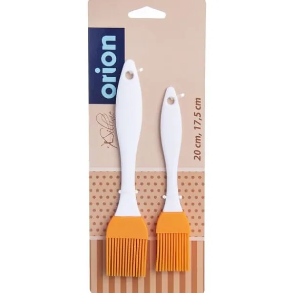 Set med två silikonpenslar för smörjning. Detta set är perfekt för hembakning, matlagning och bakning. Penslarnas flexibla spets gör det enkelt att breda ut saker som äggula eller olja över degytan. Tillverkad av material av högsta kvalitet, vilket garanterar bekväm användning. Helt säker för hälsan och livsmedelssäker. Originalprodukt från det tjeckiska märket Orion. Tillverkad enligt europeiska standarder.