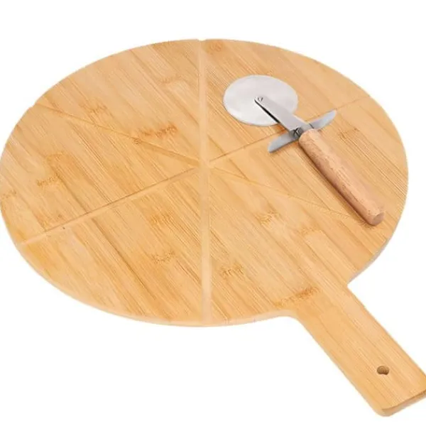 Njut av varje bit med precision tack vare pizzabordet. Tillverkat av naturligt bambu, är det graverat med markeringar för 8 lika delar. I kombination med sin pizzaskärare i rostfritt stål med trähandtag förenar det funktionalitet, hållbarhet och estetik. Perfekt för alla dina pizzakvällar, gemytliga middagar eller professionella serveringar.