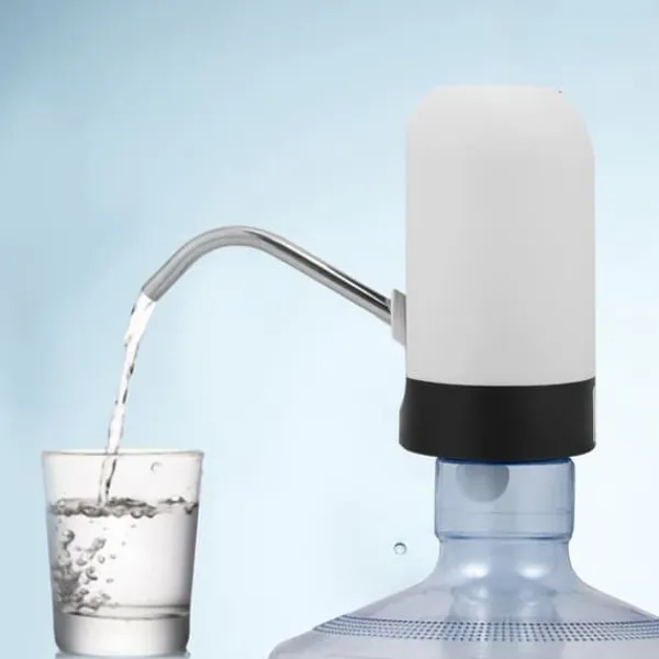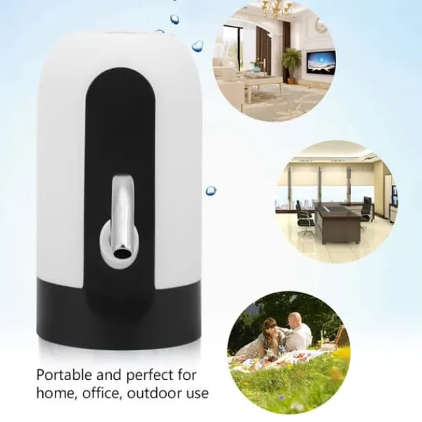 Bärbar LED-ljusflaskvattenpump USB-uppladdningsbar dispenser för hemmakontor (vit)