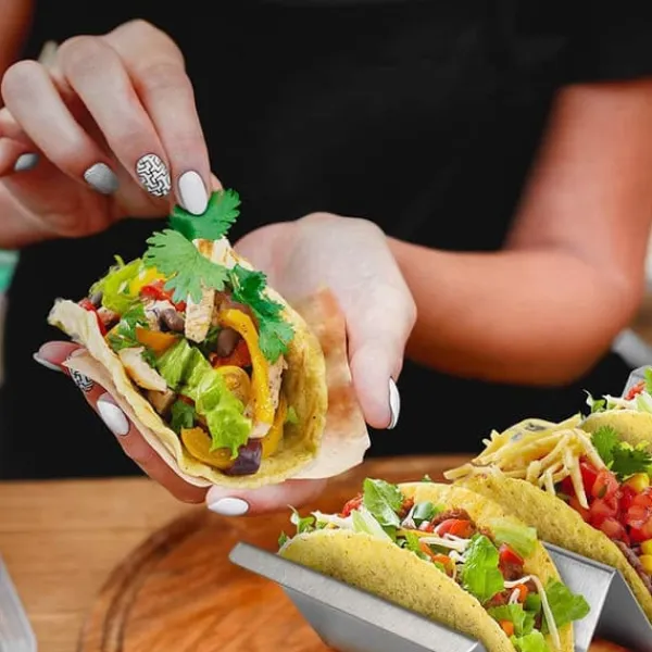 Designade för att hålla tacoskal upprätt, vilket gör det enkelt att fylla dem med dina favoritingredienser utan att spilla eller röra.