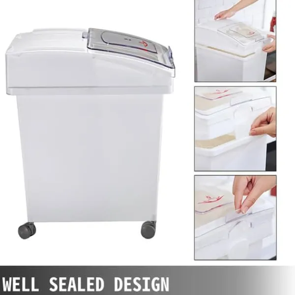 Lämplig för förvaring av torrvaror som ris, mjöl, majs, sojabönor, spannmål, etc. Används ofta i storkök och hem.