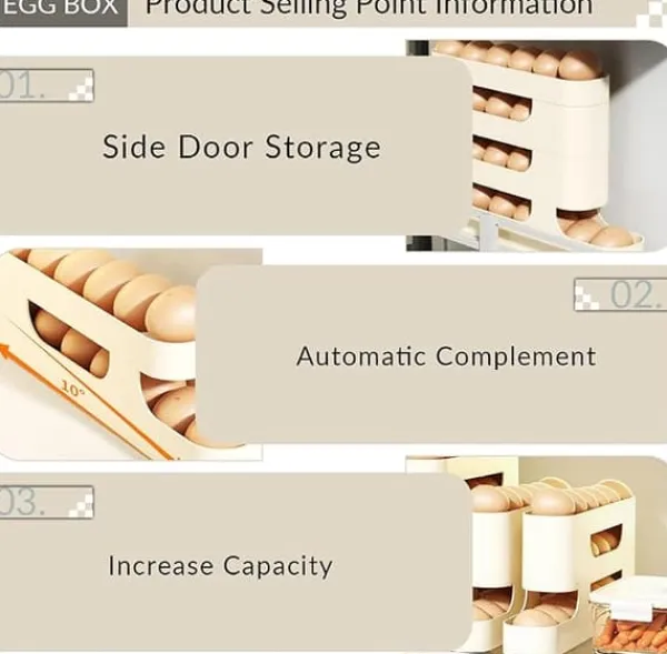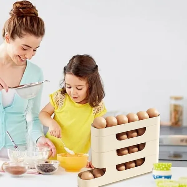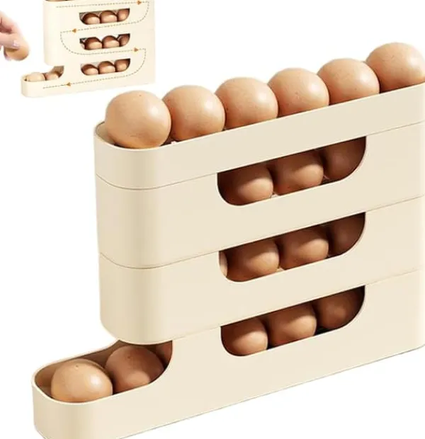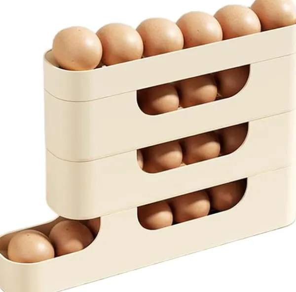 Behållare För Matförvaring-Ägghållare för – Kylskåpsäggdispenser för kylskåp, bilrullning – 4 nivåer – Platsbesparande stor kapacitet
