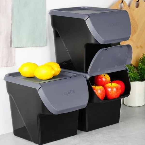 Frukt- och grönsaksbehållare. Den kan också användas för att sortera avfall eller förvara saker hemma eller i garaget. Snyggt färgad, lätt och lätt att använda. Det avtagbara locket har en gångjärnsförsedd flik, vilket gör det lätt att fylla på och rengöra.