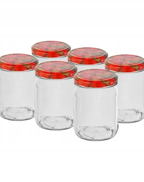 Glasburk med en kapacitet på 500 ml under ett fi 82/6-lock. Förpackad i lådor om 6 stycken. Burkarna är tillverkade av tjockt, transparent glas,