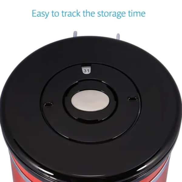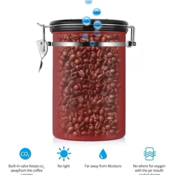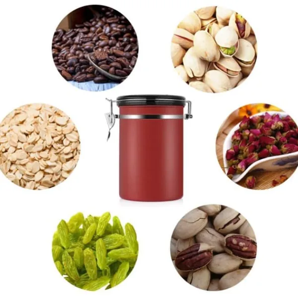Välkommen till vår butik! Denna 1,8-liters kaffebehållare är perfekt för förvaring i köket, utformad för att hålla kaffebönor, malet kaffe, torra teblad, nötter, spannmål, mjöl, socker med mera. Den har en lufttät och hållbar konstruktion för att hålla innehållet färskt. Den inbyggda envägsgasventilen och silikontätningsringen förhindrar att luft, fukt och ljus tränger in, vilket skyddar dina varor från fukt och oxidation. Tillverkad av högkvalitativt 304 rostfritt stål, erbjuder den utmärkt korrosionsbeständighet och långvarig användning. Locket har en tidskompass för att registrera förvaringsdatum, vilket hjälper dig att övervaka färskheten. Med en kapacitet på 1,8 liter hjälper den till att spara utrymme och organisera ditt kök snyggt. Finns i färgerna rött, svart, silver och guld. Paketet innehåller en kaffebehållare. Nöjdhet: Våra kunder är vår högsta prioritet. Om du upptäcker några produktproblem efter att du mottagit varorna, såsom skador eller felaktig mängd varor, vänligen kontakta säljaren omedelbart. Vi gör vårt bästa för att ge dig tillfredsställande kundservice.